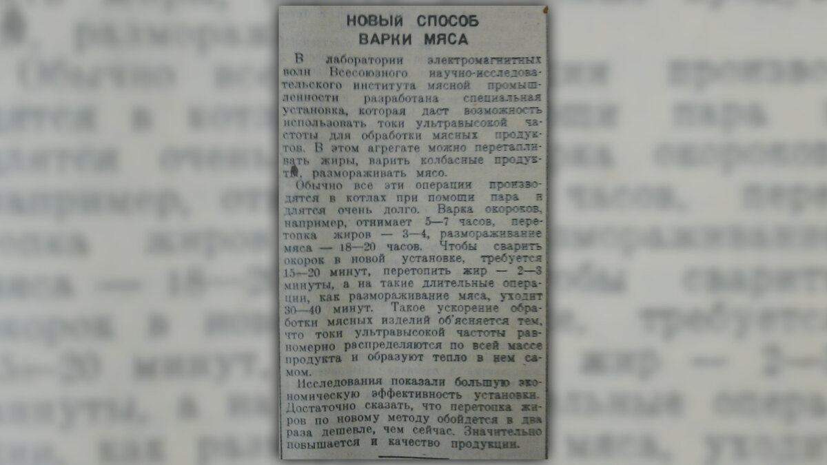 ✅ On June 13, 1941, the newspaper “Trud” published a note about the invention of a device that uses ultra-high frequency currents to process food.