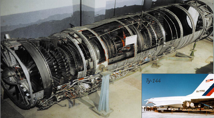 The lion's share of success in overcoming the sound barrier by the new aircraft was to be provided by the engine. It was built by the N. D. Kuznetsov Design Bureau. A bypass turbofan engine NK-144 with afterburners was developed specifically for the Tu-144. The latest aluminum-based materials were used in the aircraft, and titanium was widely used for the first time.